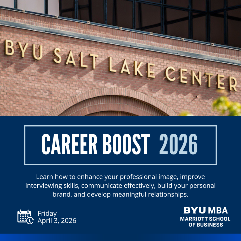 Whether you are looking to advance within your current organization, preparing for a strategic career pivot, or simply looking to reconnect with the high-caliber BYU MBA community, Career Boost 2026 is for you.